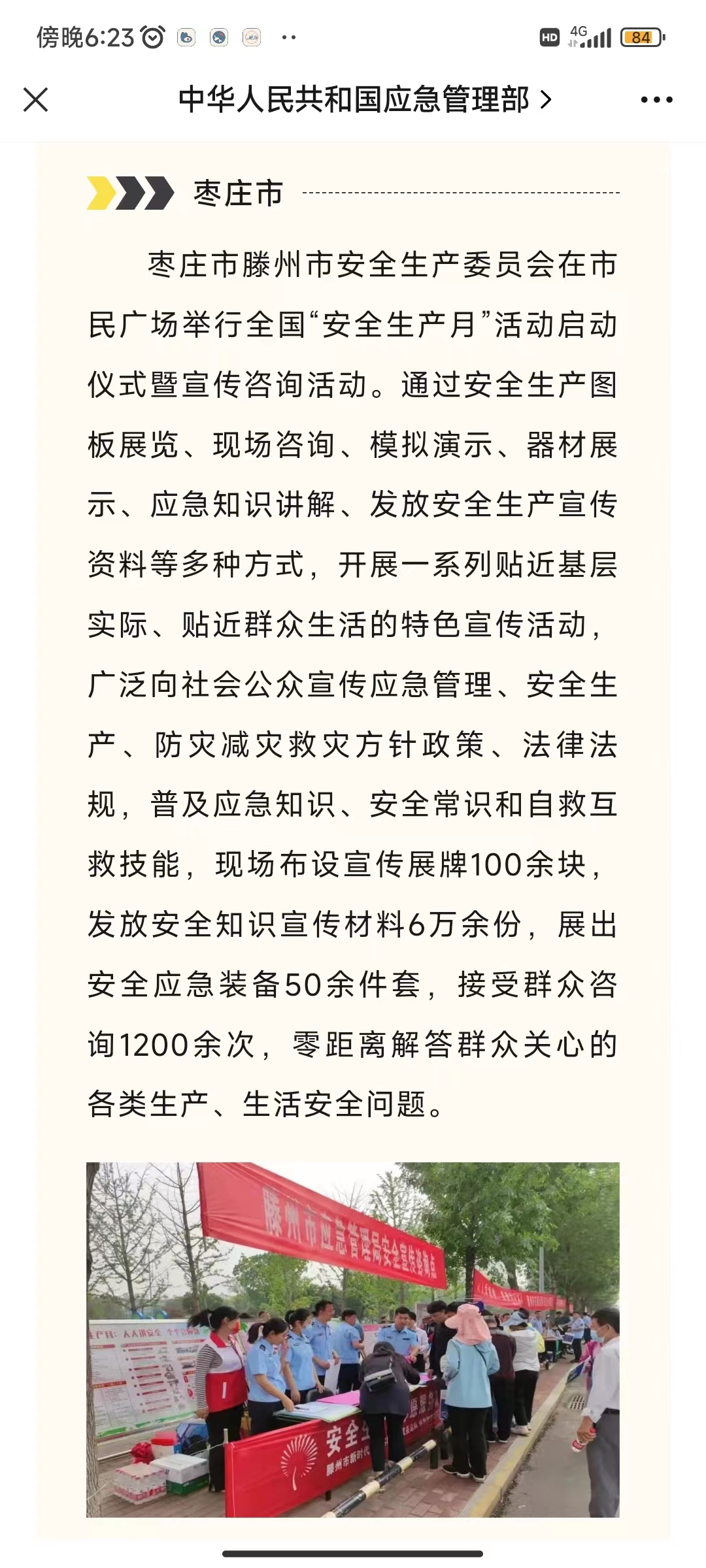 6月16日是全国安全生产宣传咨询日,滕州坚持“联动、同心”,通过多种形式开展安全生产宣传咨询活动,着力打造安全宣传样板,努力营造“关爱生命、关注安全”的浓厚宣传氛围。