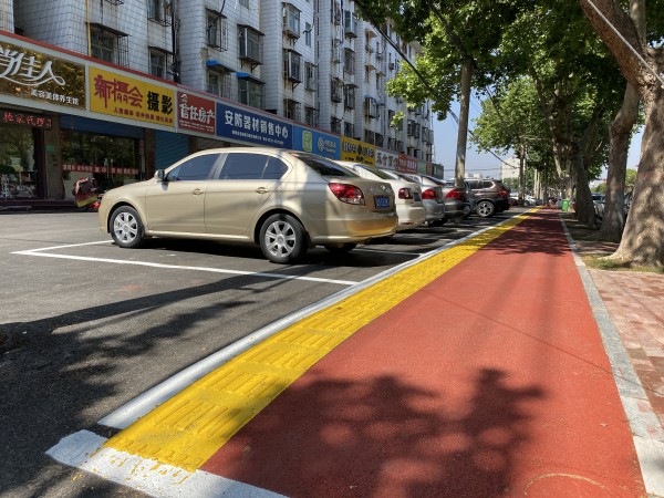 同时,市政工程管理服务中心在步道以上合理区域施划了停车位,为推进智慧停车管理工作打牢基础,并在树穴池间隔区域施划了自行车停放区域,引导市民规范文明停车,共同营造良好城市环境。