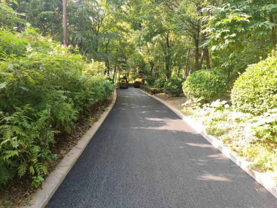 该段步道路面原为大理石板和鹅卵石间隔铺设,由于建设时间较长,大理石板破损和鹅卵石缺失较为普遍,且雨天路面湿滑,不便于行走。因此,市政工程管理服务中心对该步道进行升级改造,铺设更为结实和防滑的沥青路面。