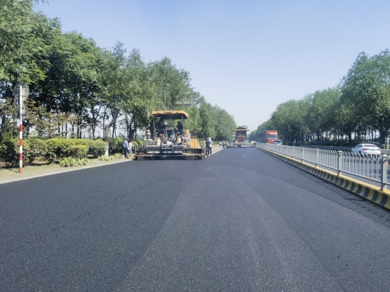 为保证项目顺利实施,市政工程管理服务中心中发公司抽调精兵强将组建项目部,针对工程特点,科学编制施工方案,克服工期紧、任务重、交通影响大等不利因素,采取“白加黑”工作模式,抢抓施工进度。为尽可能减小对道路通行的影响,采取半幅封闭施工。该工程将原有道路面层铣刨5cm,重新覆铺5cm沥青面层。经过项目部全体人员团结协作,工程于6月13日顺利完工,累计改造提升道路约1.2公里,覆铺沥青面层约2.8万平方米,并完成道路标线施画。