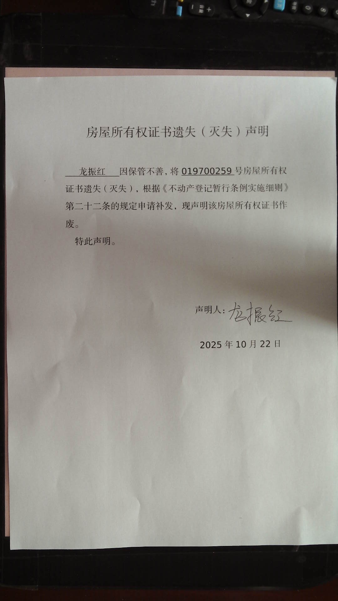 滕州市自然资源局房屋所有权证书遗失(灭失)声明