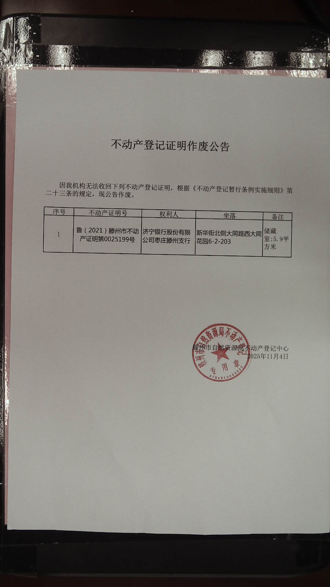 滕州市自然资源局不动产登记证明作废公告