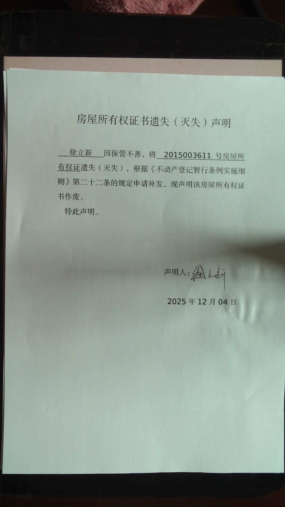 滕州市自然资源局房屋所有权证书遗失(灭失)声明