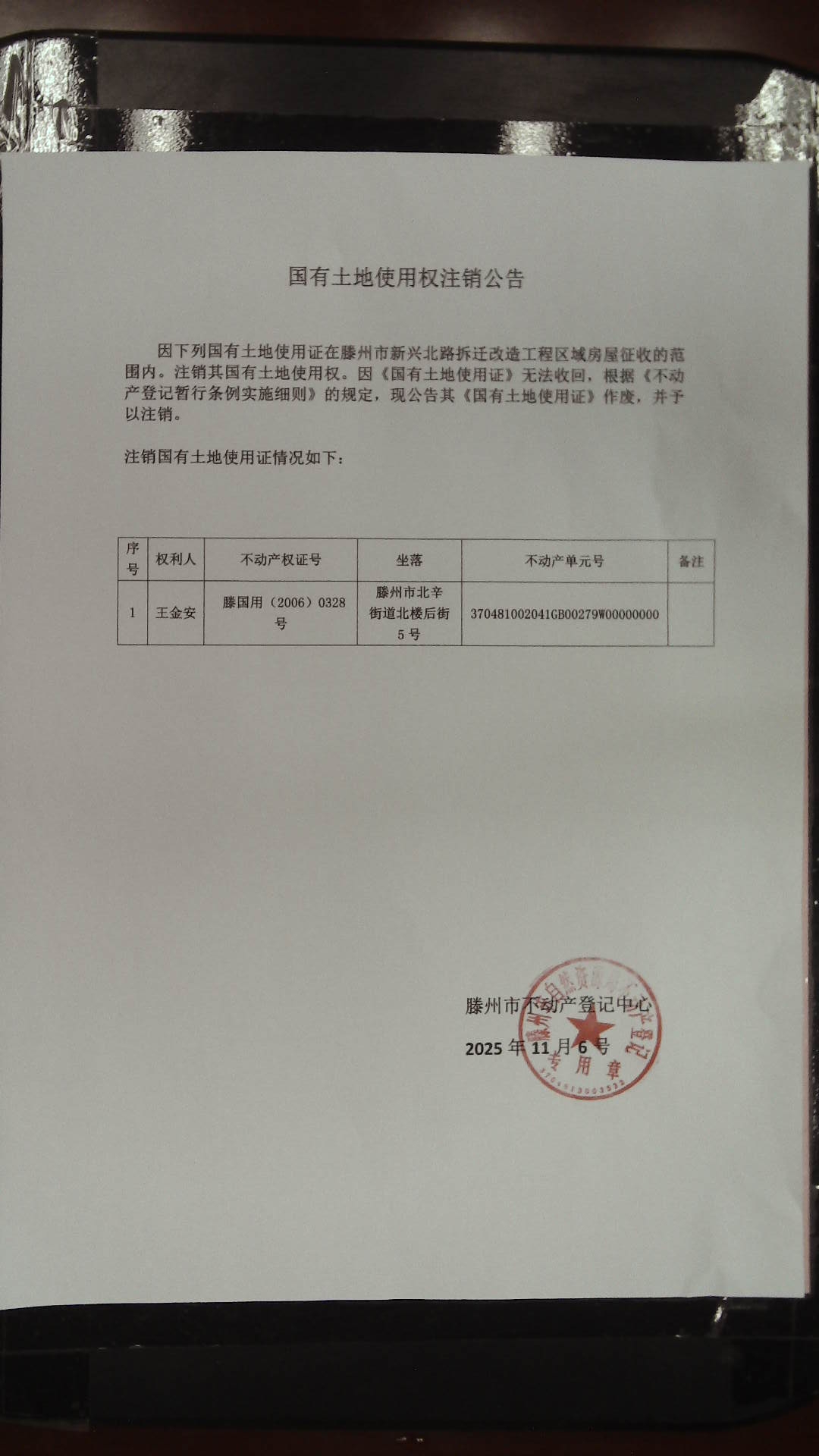 滕州市自然资源局国有土地使用权注销公告