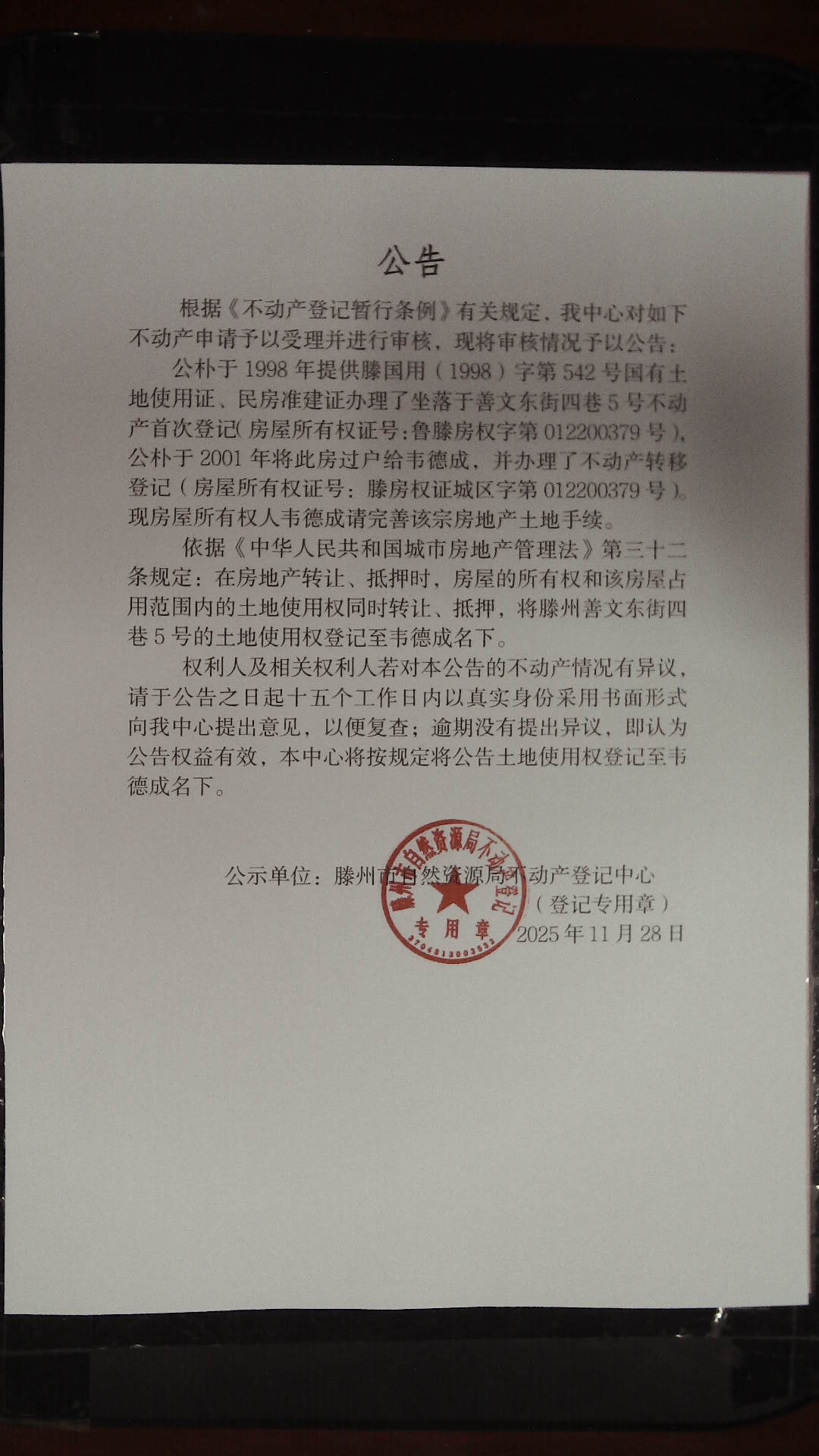 滕州市自然资源局公告