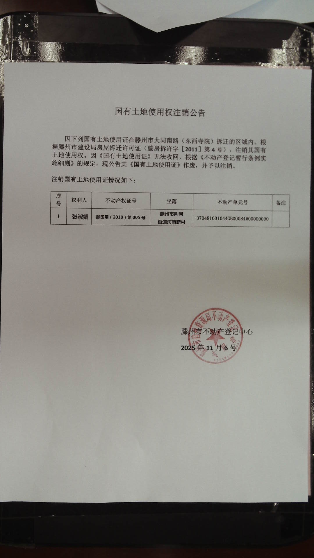 滕州市自然资源局国有土地使用权注销公告
