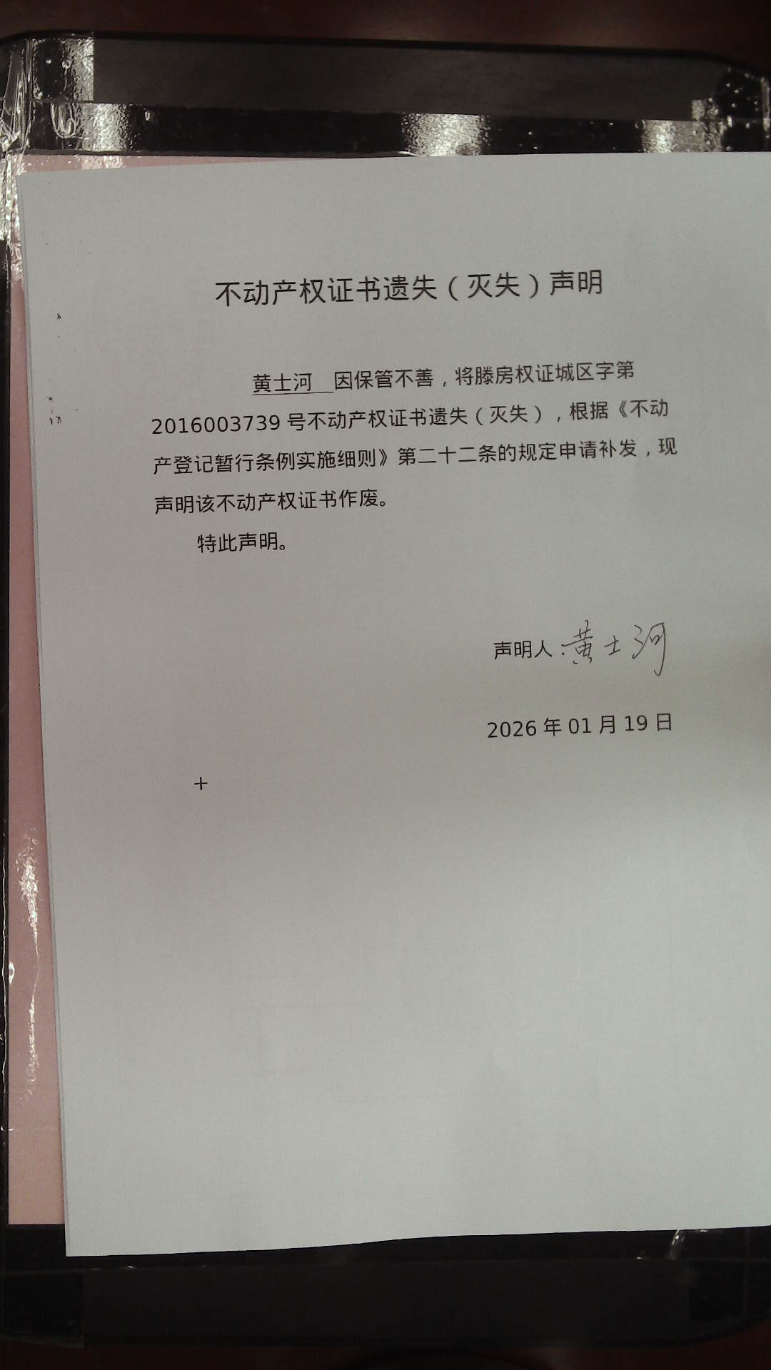 滕州市自然资源局不动产权证书遗失(灭失)声明