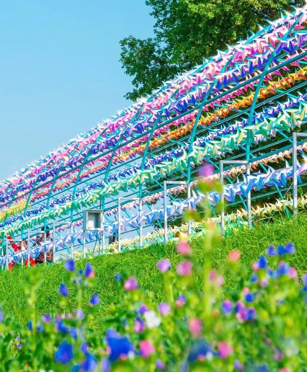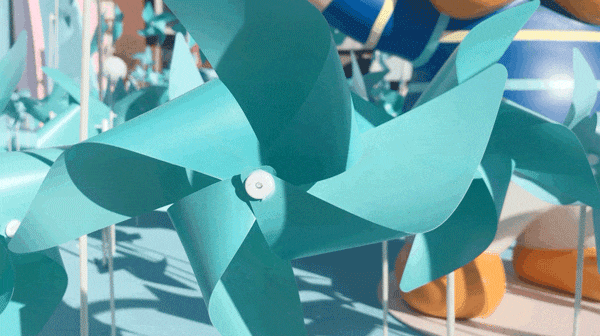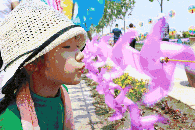多彩的风车随风“摇曳”,