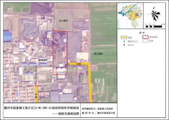 三、道路系统:地块出入口通过级索镇东王晁村东西走向的中心大街,向北可至省道S320,向西可至省道S104,经由村道连接周边村庄,由省道S320连接滕州城区。