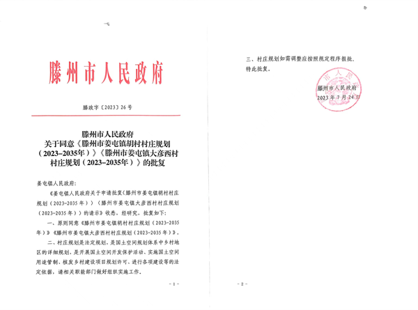 关于《滕州市姜屯镇大彦西村村庄规划(2023-2035年)》的批后公告