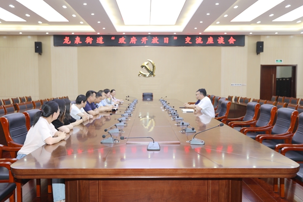 活动结束后,受邀代表们参加了龙泉街道“政府开放日”交流座谈会。会上,街道党工委副书记、政协委员联络室主任蔡大旗介绍了街道经济社会发展工作情况,与各位代表就政务服务、社会治理、人居环境整治等问题展开了交流讨论,详细听取了各位代表的意见建议。蔡书记表示,龙泉街道将以此次“政府开放日”活动为契机,不断丰富政民互动形式、提升公众参与度、提高政府透明度,继续用心用情用力解决好群众“急难愁盼”的具体问题,切实提高群众满意度。