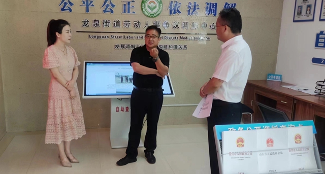 6月19日上午,市政府办公室党组成员、副主任孟防震,市政府办公室政务公开办公室主任邬琛来龙泉街道调研政务公开专区建设情况。街道党工委副书记、政协委员联络室主任蔡大旗,党工委委员、宣传委员王腾,相关部门、社区负责人参加活动。