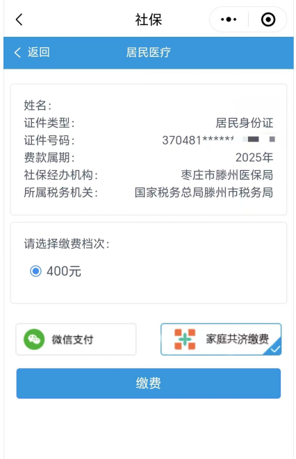 家庭成员缴纳的是枣庄市城乡居民基本医疗保险费用,缴费人自愿选择医保个账共济缴费。
