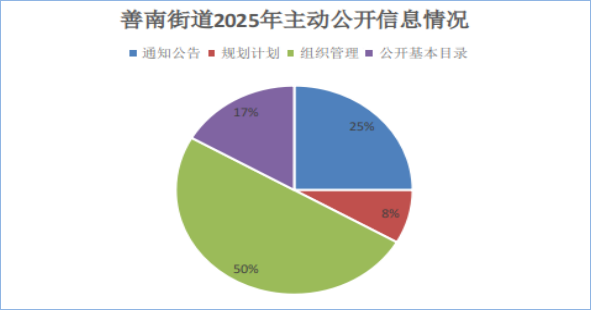 2025年,善南街道办事处坚持以“公开为常态、不公开为例外”的原则,不断拓展主动公开的广度和深度。善南街道按照市委、市政府关于推进政府信息公开的部署和要求,有计划、有步骤地开展政府信息公开工作,健全工作机制,及时更新政府信息公开网站的各个栏目信息,公开的政府服务形象,保障公民知情权、参与权和监督权,推动政府信息公开工作取得重要的突破。全年推送工作动态信息630条,滕州市人民政府官网信息公开页面主动公开政府信息数12条,其中,通知公告3条,规划计划1条,组织管理6条,公开基本目录2条,现将我街道信息公开工作情况总结如下: