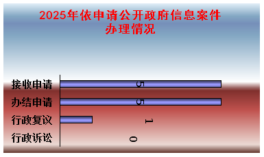 严格时限和质量标准,依法开展依申请公开工作。2025年共收到政府信息公开申请5件,较上一年增加3件,全部为自然人申请;共办结政府信息公开申请5件,其中,予以公开3件,无法提供2件;因政府信息公开申请引发行政复议1件,结果维持1件;无行政诉讼。