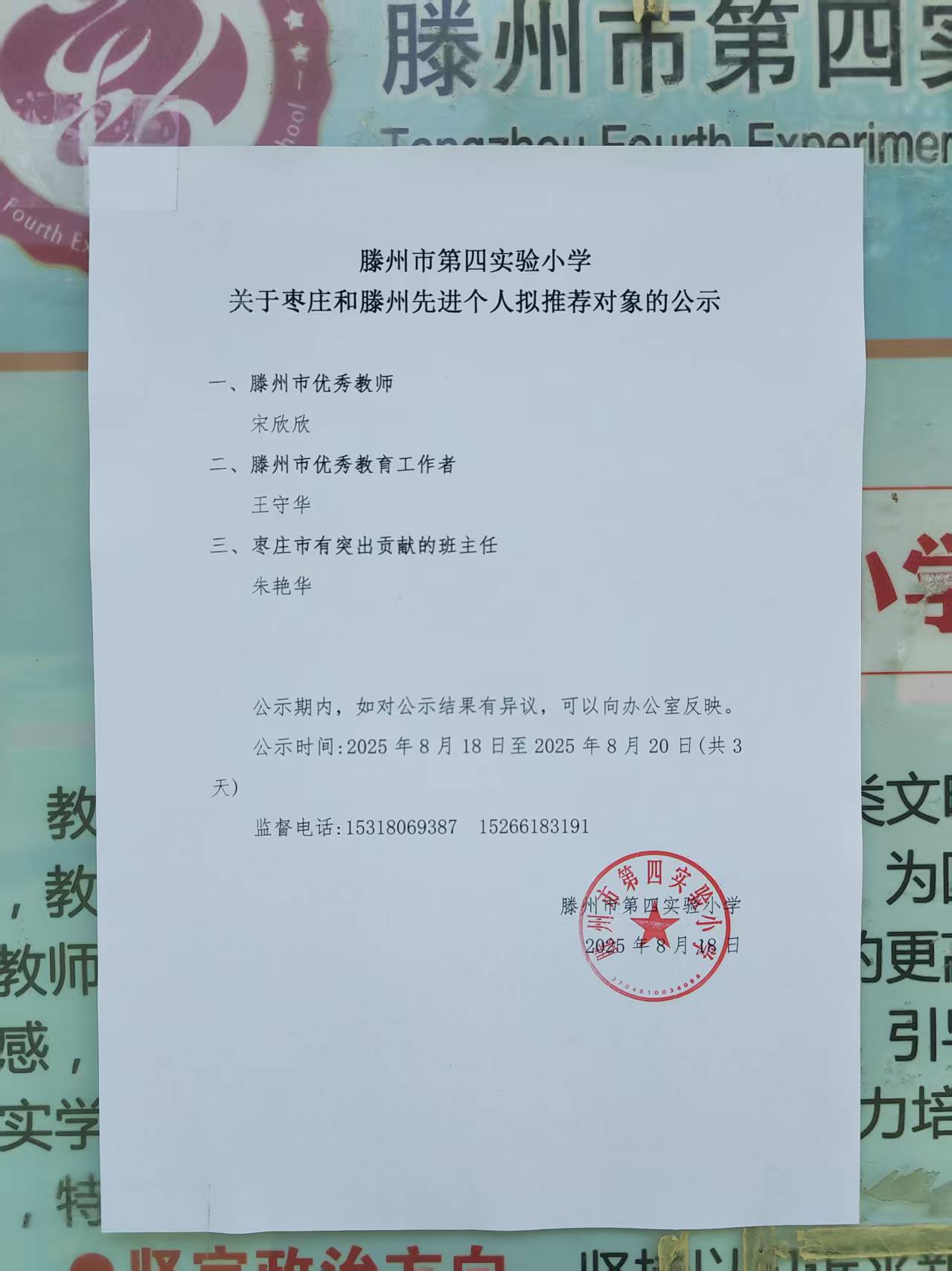 (评先树优)滕州市第四实验小学2025先进个人评选推荐名单