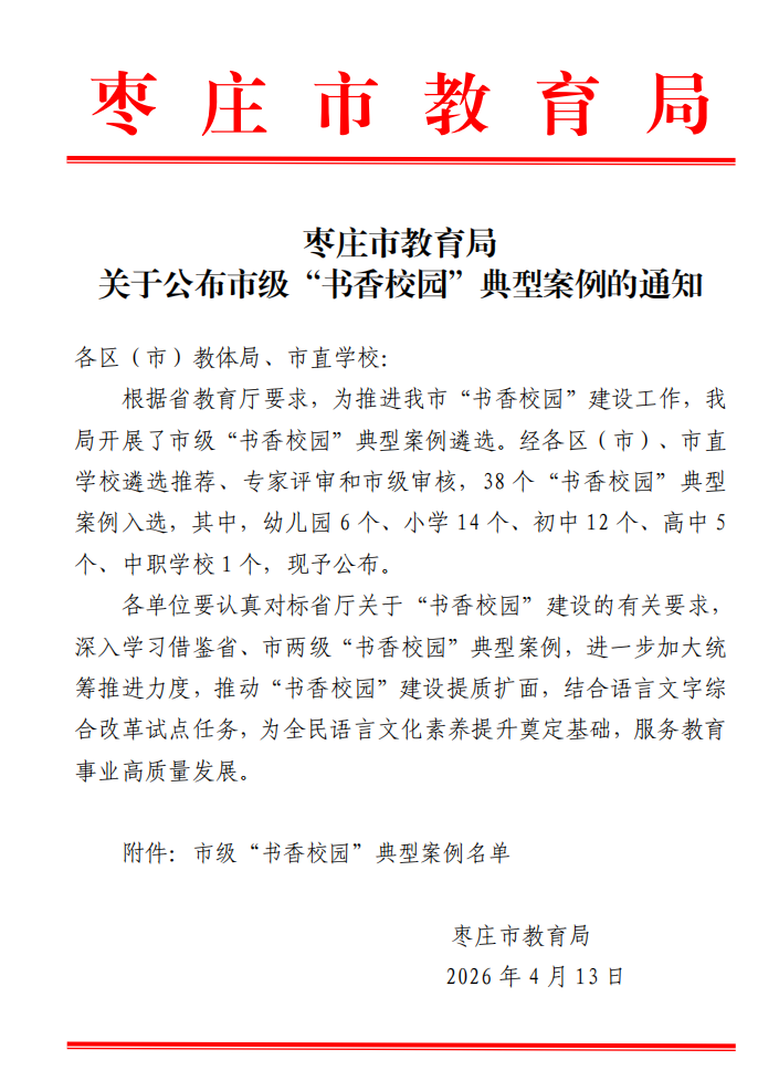 此次入选枣庄市市级 “书香校园” 典型案例,是对我校长期深耕阅读教育的充分肯定,更是一份沉甸甸的责任与动力。