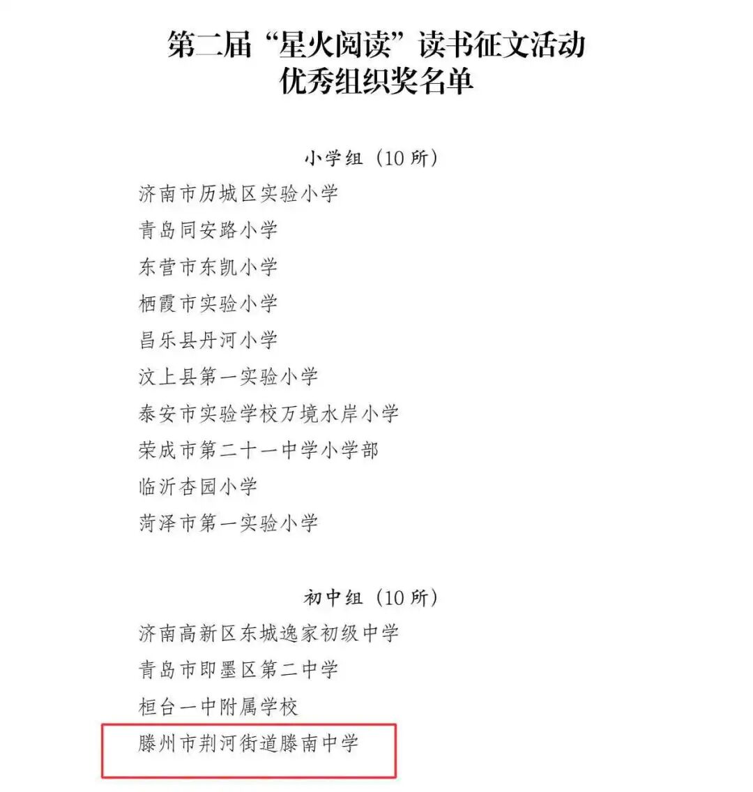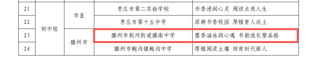 (教学信息)滕南中学获评枣庄市书香校园典型案例