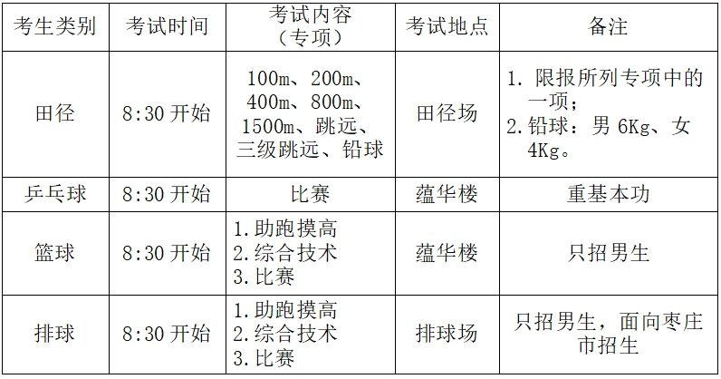 4.排球、篮球只招男生。排球面向枣庄市招生。