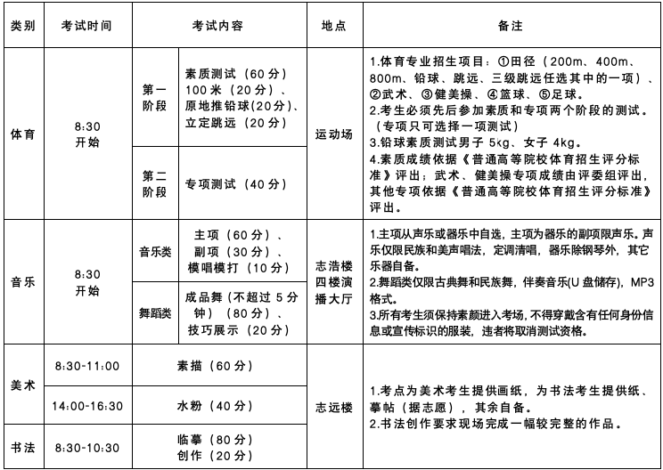 4.特别说明:取得专业合格证书的考生,必须第一志愿报考我校,参加全市文化课统考;学校将于中考体育测试期间,对来我校参加考试的艺体生同学再次核对信息,依据专业考试当天的现场照片、艺体专业准考证、中考准考证和身份证进行核对;入学后必须学习相应专业,参加专业训练;不符合条件,弄虚作假者,取消录取资格。