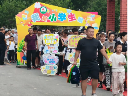 一年级的小萌新们手牵气球,踏着欢快的节拍,穿过缀满星星的成长门。老师们蹲下身,为每个孩子贴上闪亮的姓名贴,像为雏鸟系上第一片羽毛。