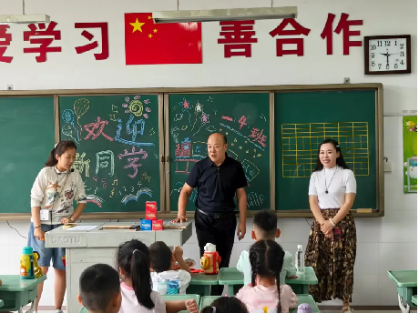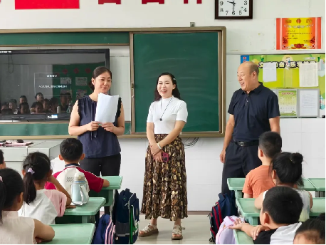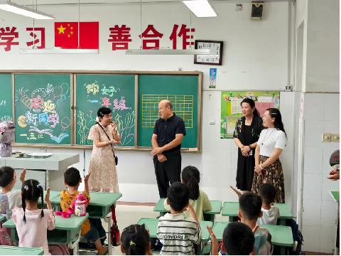西关小学一年级各班班主任站在讲台前,以温暖而庄重的目光迎接每一位新同学。教室布置得整洁明亮,墙上悬挂着欢迎新同学的标语,黑板上精心绘制的成长树图案象征着孩子们即将在这里扎根发芽。随后,通过简短的自我介绍和互动环节,帮助孩子们初步建立对班主任的信任感,也为接下来的小学生活奠定了良好的基础。