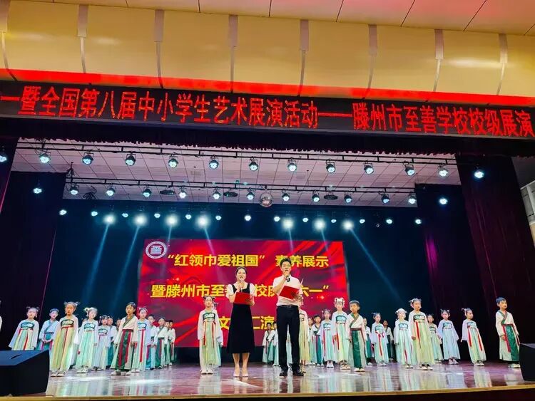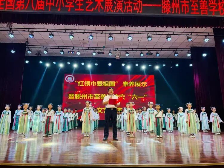 为丰富校园文化生活,激发学生热爱学习、热爱生活、热爱校园的情感,提升学生的全面素养,让学生度过一个欢乐、祥和、向上的节日。5月31日下午,滕州市至善学校小学部在第一学术报告厅举行“红领巾爱祖国” 素养展示暨庆“六一”文艺汇演。