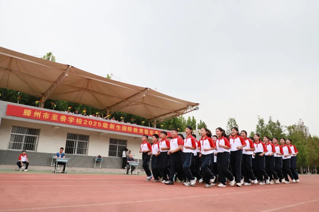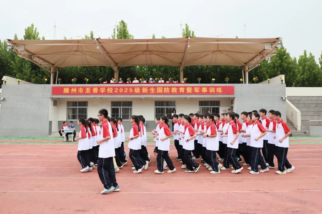 9月5日下午,滕州市至善学校七年级新生国防教育暨常规管理军事训练汇报表演在学校田径场隆重举行。全体七年级新生以昂扬的姿态、整齐的队列,圆满完成军训任务,为初中国防教育第一课交上了满意答卷。