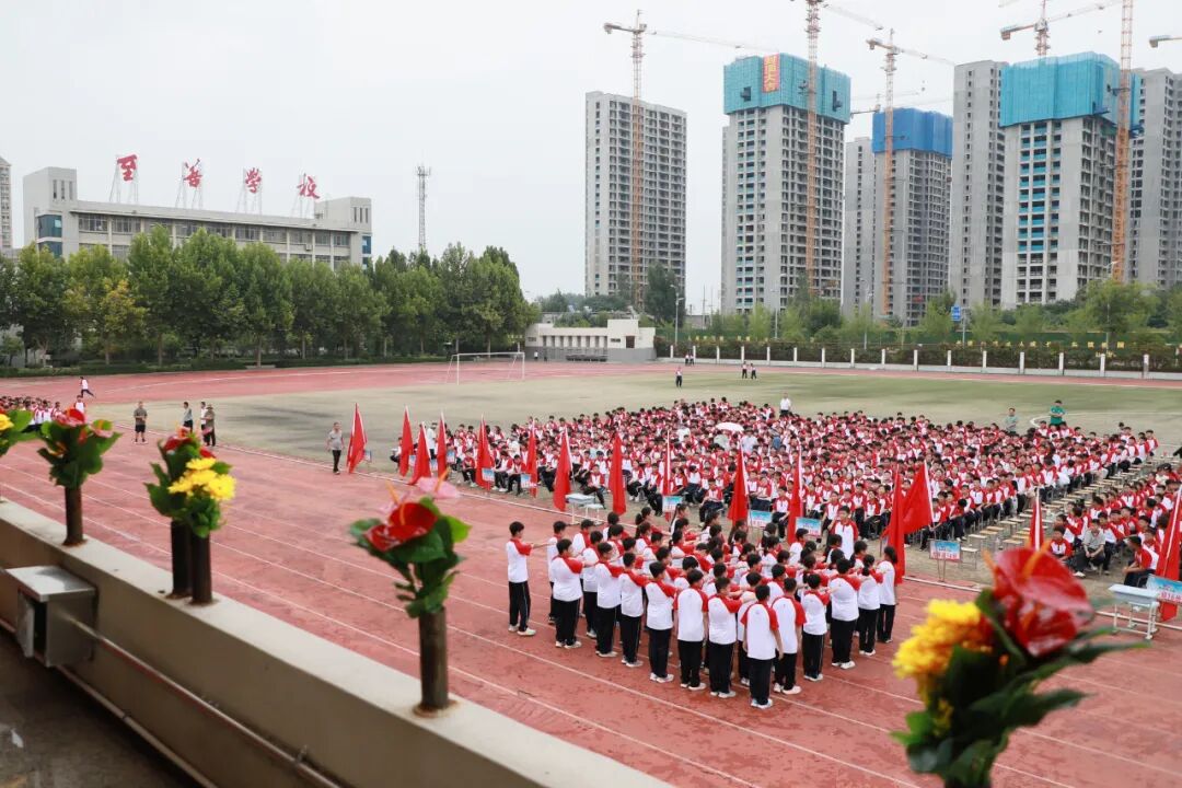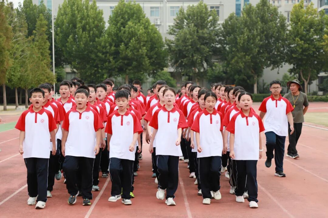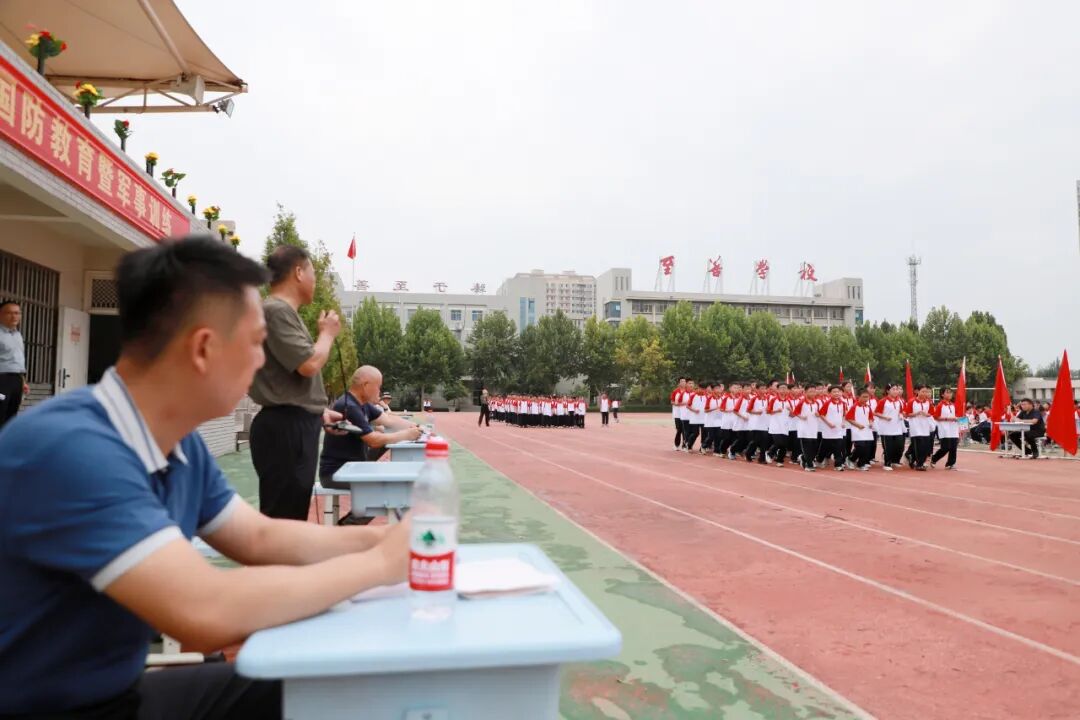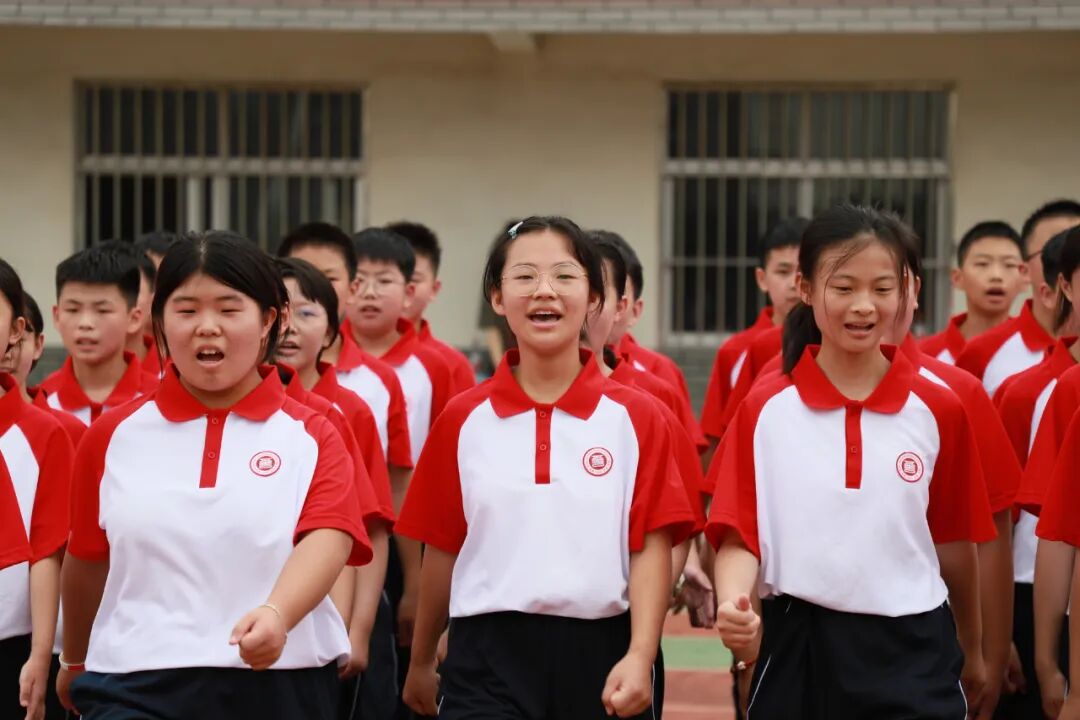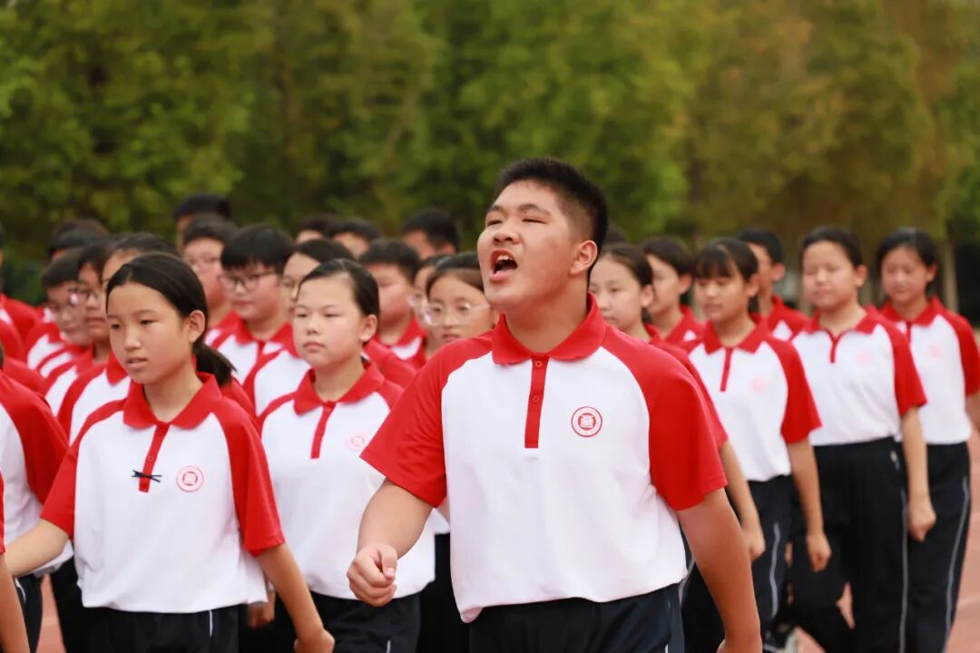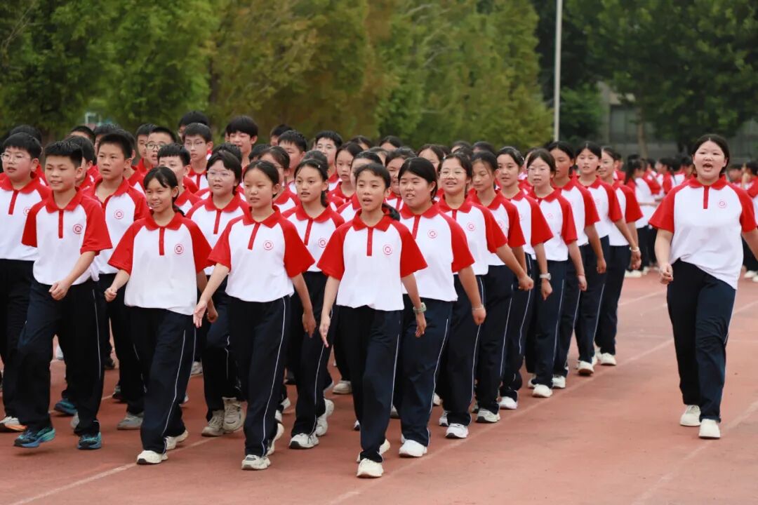 各营队方阵依次登场,同学们身着统一的校服,迈着铿锵有力的步伐,喊着嘹亮震天的口号,从主席台前方整齐走过。