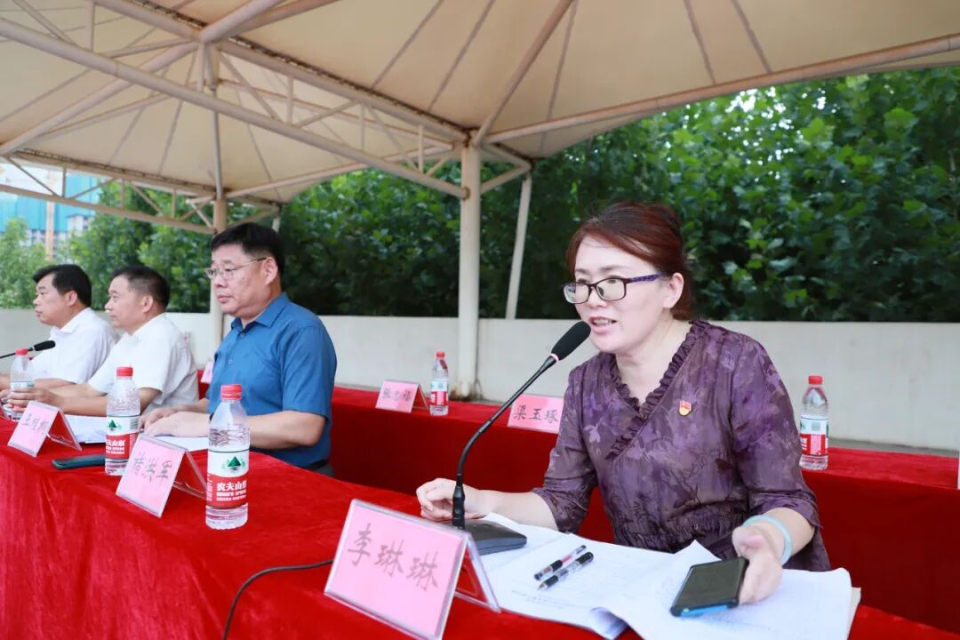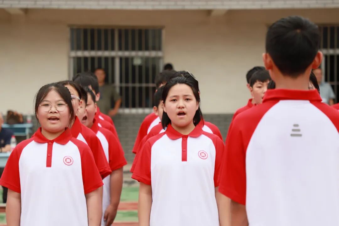 她首先向圆满完成训练任务的七年级新生表示祝贺,向辛勤付出的教官和班主任致以感谢。同时,勉励同学们将军训中养成的纪律意识、拼搏精神、团队协作能力融入今后的学习生活,以更坚定的意志、更饱满的热情迎接初中挑战,成长为有担当、有本领的新时代至善好少年。
