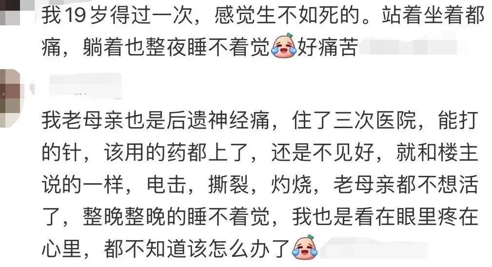 约 10% 的带状疱疹患者(以老年人为主),会出现带状疱疹后神经痛(PHN)。这种疼痛表现为烧灼、电击、刀割、撕裂,疼痛剧烈,病程长达十年之久或更长[3],堪称「不死的癌症」。