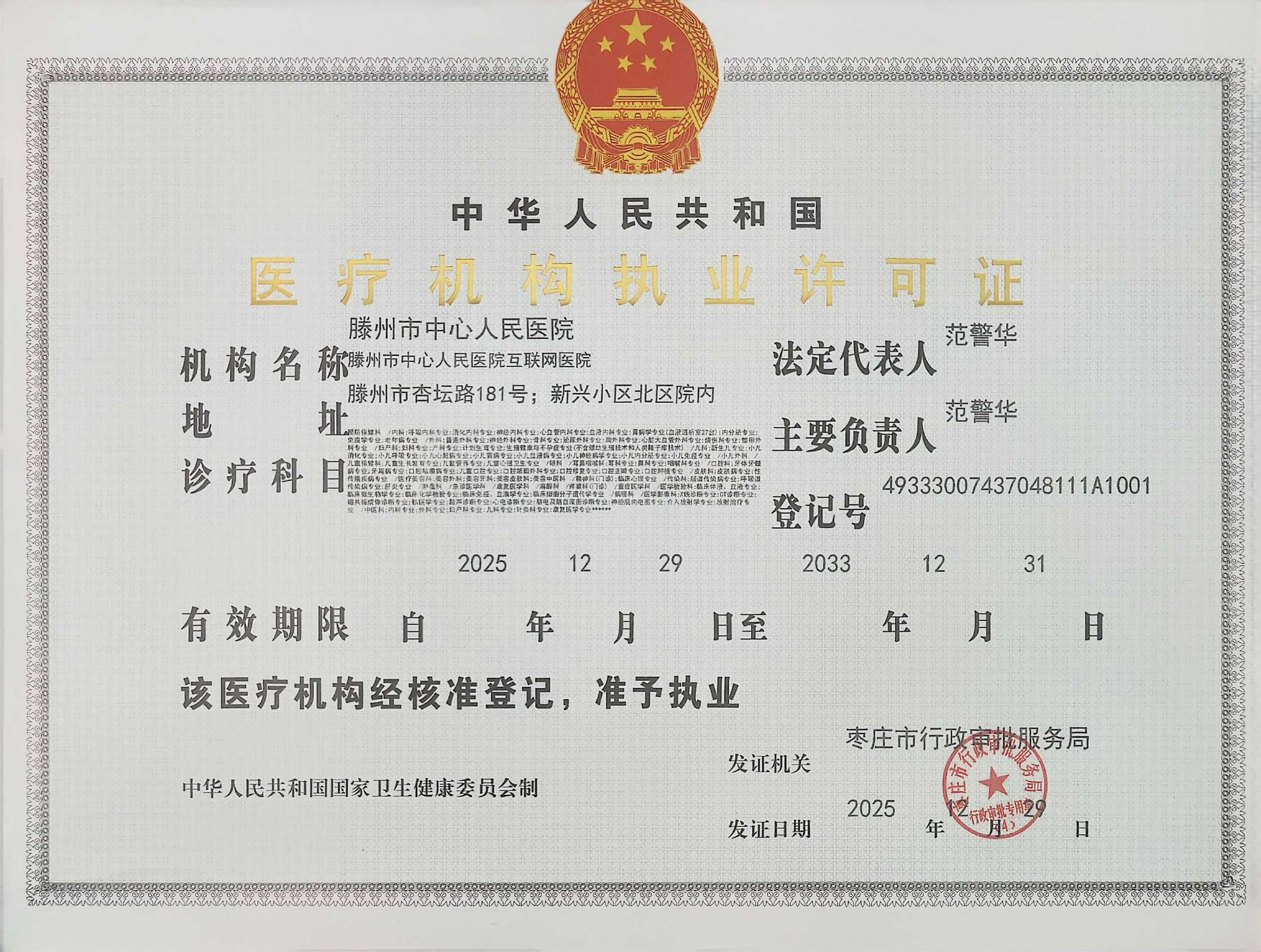 (机构标识)滕州市中心人民医院《医疗机构执业许可证》信息