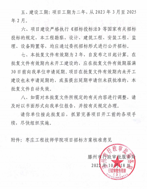 枣庄工程技师学院暨产教融合实训基地项目工程总承包(EPC)批准结果