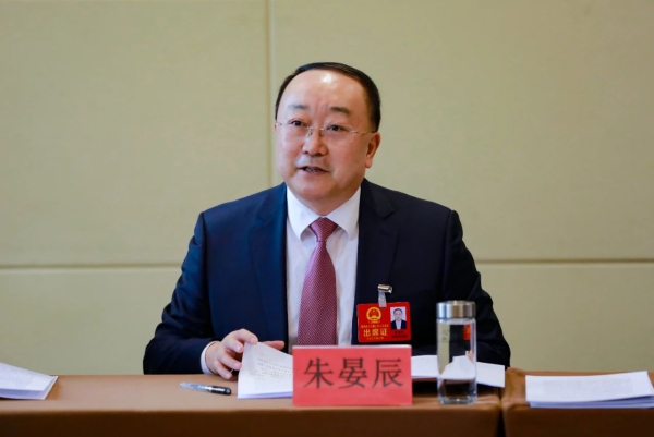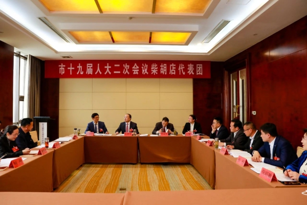 2月8日,市人大常委会主任朱晏辰来到柴胡店代表团,与代表们一起审议政府工作报告和市人大常委会工作报告等报告。市人大常委会党组成员、办公室主任贾福军参加审议。