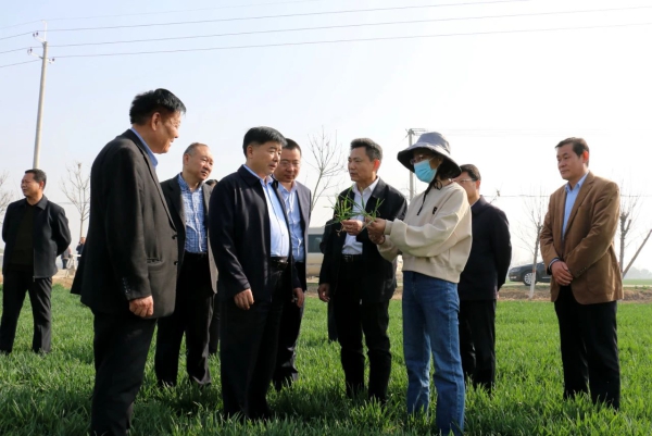检查组察看洪绪镇南苗庄村小麦高产创建示范田