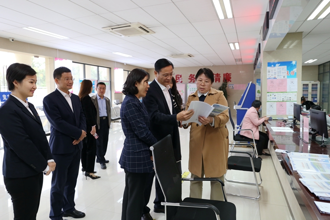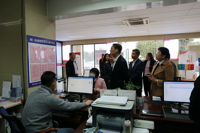 在龙泉街道便民服务中心医保服务窗口,赵卫平与窗口负责人深入交流,听取情况介绍,进行“体检式”检查,反馈了有关问题。