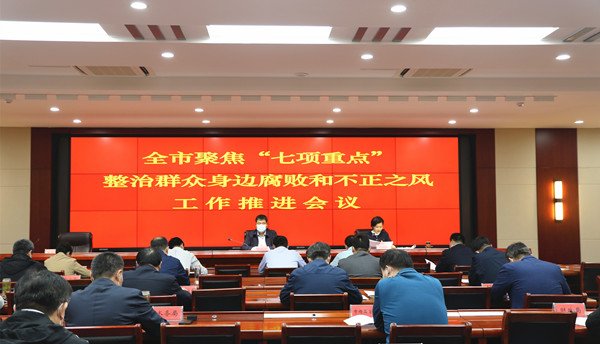 会议指出,专项整治工作是巩固党史学习教育“我为群众办实事”实践活动成果,顺应群众所思所想所盼的重要工作。要统一思想、提高站位,切实增强做好专项整治的责任感、使命感。只有驰而不息地抓好整治和查处工作,形成持续威慑,管住“微权力”,惩治“微腐败”,清除害群之马,扎紧管理笼子,让群众切实感受到公平正义,才能将全面从严治党向基层延伸的各项任务落到实处。要突出重点、细化措施,扎实深入开展好专项整治工作。各单位要按照时间节点,把查摆问题、整改提升、从严查处、规范管理贯穿始终,根据任务分工制定实施方案,深挖细查,对存在的问题大起底,从严从实抓好整改,坚决惩治腐败问题,健全完善制度规定,强化刚性约束,坚决堵住管理漏洞,推动专项整治扎实开展。要加强领导、凝聚合力,确保专项整治工作取得实效。各牵头单位要充分发挥统筹抓总作用,部门单位相互配合,建立完善沟通会商机制。市纪委监委有关部室要建立情况通报、问题会商、线索移送工作机制,及时研究重要问题,通报曝光典型案例,释放执纪必严强烈信号。