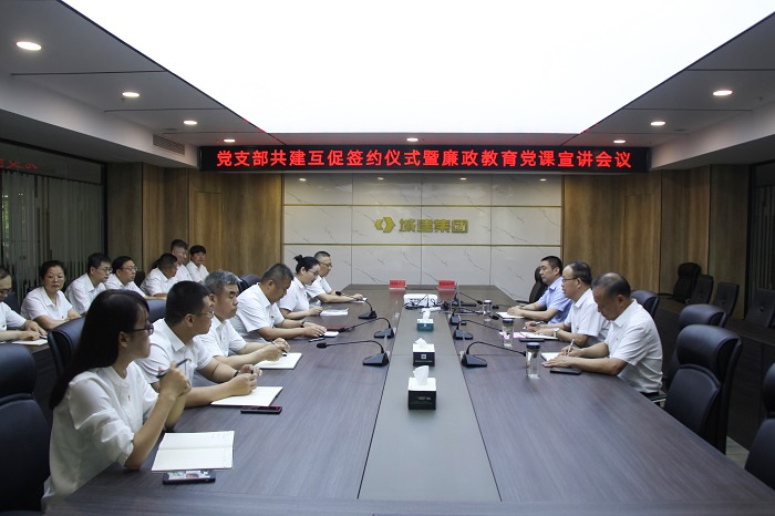 7月1日,市纪委监委机关第四党支部与城建集团机关党支部共建互促签约仪式暨廉政教育党课宣讲会议在城建集团二楼会议室召开。市纪委常委、监委委员徐钦民,市纪委监委派驻第五纪检监察组组长宋传忠、副组长陈长金,城建集团党委书记、董事长张健等出席会议,城建集团纪委书记、监事会主席杨侠主持。
