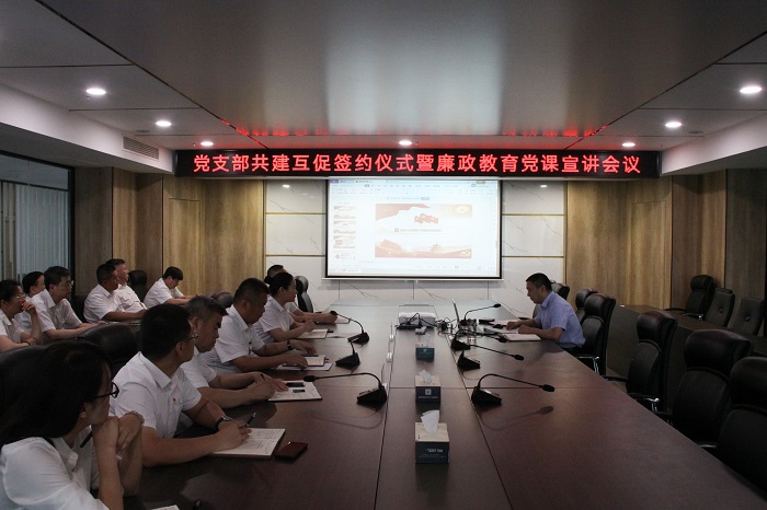 共建互促签约仪式后,宋传忠为与会党员讲授廉政教育专题党课。党课从深刻认识反腐败斗争新的阶段性特征和准确把握新时代廉洁文化建设的内涵要求两个方面进行了详细的阐述,并结合集团工作性质和特点,对党员干部加强廉洁自律建设提出了四点要求。党课深入浅出、内容丰富,引发了与会党员的思想共鸣。与会党员纷纷表示,在今后的工作生活中,将时刻严格要求自己,始终做到心中有廉、心中有法、心中有畏,不断提高思想意识,强化政治担当,为推动集团高质量发展提供坚强纪律保证。