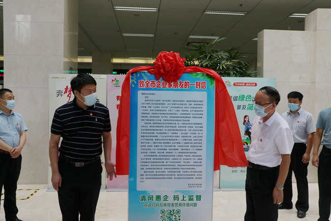 活动指出,构建“清风惠企•码上监督”监督举报平台,是注重发挥信息时代互联网优势、最大限度地延伸监督触角、拓宽监督渠道的重要途径,是打通企业群众监督的“最后一公里”、方便企业群众随手随时随地扫码举报的给力举措。市政务服务中心是服务企业群众、展示政府形象的重要窗口,也是优化营商环境的主要阵地。希望市政务服务中心全体工作人员坚定政治站位、扛牢政治责任,瞄准目标方向、强化岗位担当,聚焦关键环节、精准助企惠民,用心改革创新、全力攻坚克难,严守纪律规矩、构建“亲清”政商关系,努力推动审批大提速、服务大提升,确保优化营商环境和群众满意度工作取得新成效、新进展,把我市的营商环境“软实力”打造地更优、更美、更强。