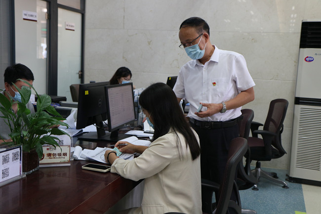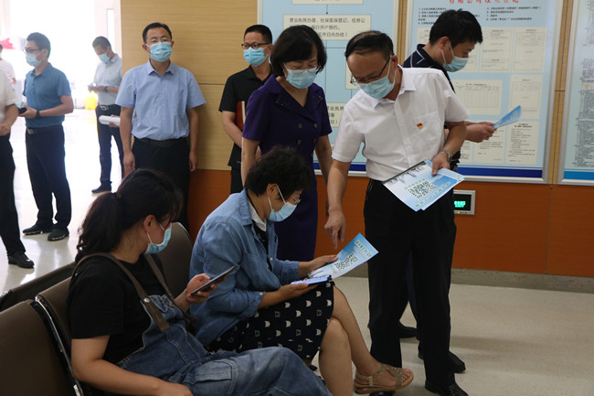 活动中,市纪委监委一行到市政务服务中心有关窗口,为办事群众现场发放了宣传彩页和监督卡。