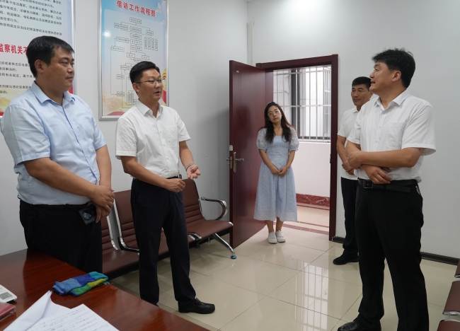 9月19日上午,市委常委、市纪委书记常涛到市纪委监委信访室实地察看了来访接待大厅、接谈室、反馈室等场所,详细了解了信访场所设置、人员配备和信访举报工作流程,听取了关于远程视频接访系统设施配备及应用情况汇报。