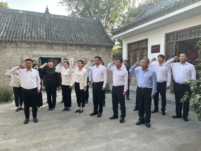 在中共滕县县委、滕县抗日民主政府旧址纪念馆,全体党员认真观看了一幅幅史料照片、一件件文物实物、一个个生动场景,深刻了解了中共滕县党组织的建立、发展、壮大的革命历程以及滕县人民在党的领导下取得的辉煌成就。在庄严肃穆的展馆,全体党员重温入党誓词,为新党员佩戴党徽,新党员代表进行表态发言。