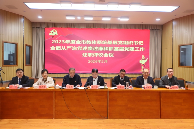 会议对全市教育系统基层党组织书记全面从严治党述责述廉和抓基层党建工作情况进行了现场测评。