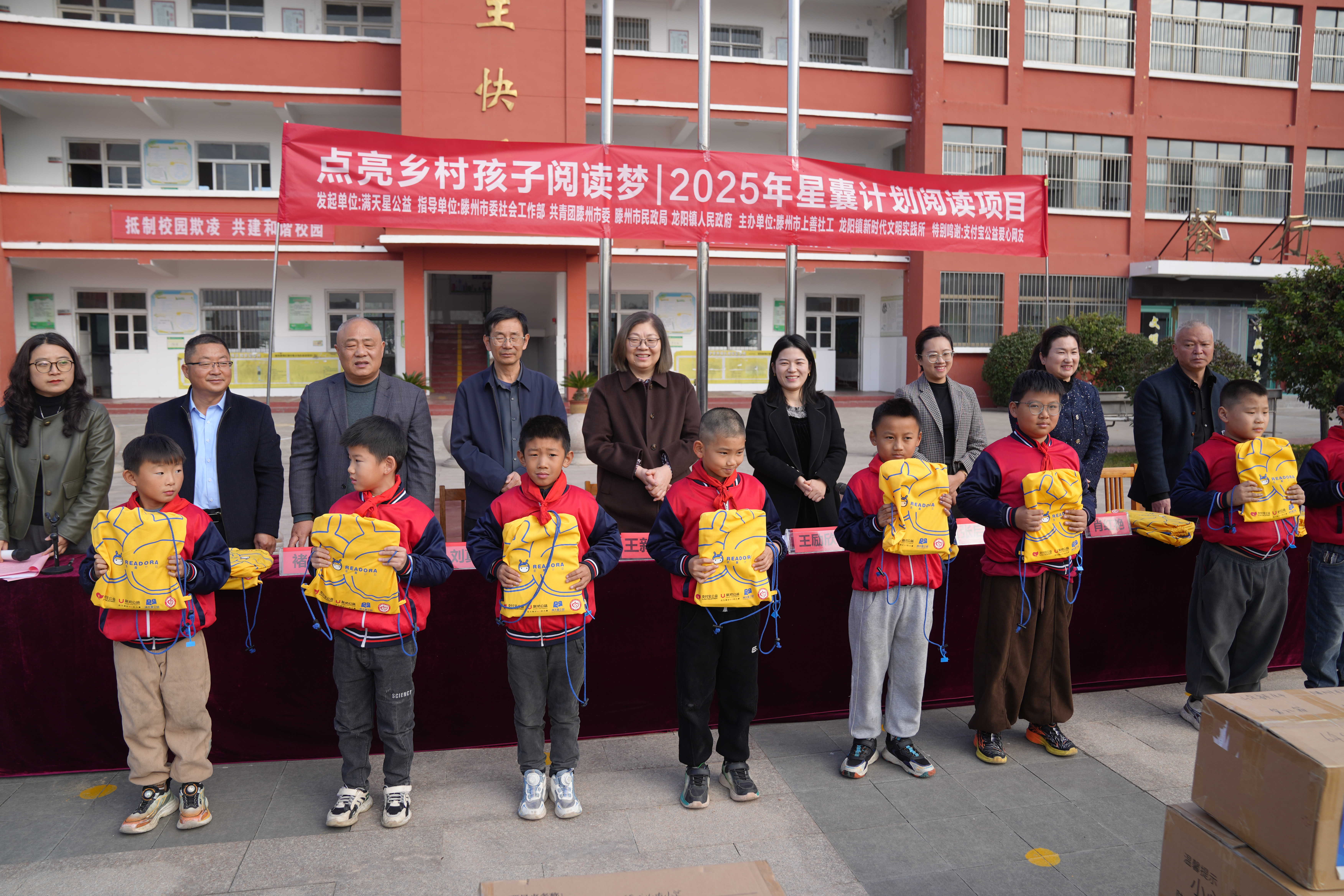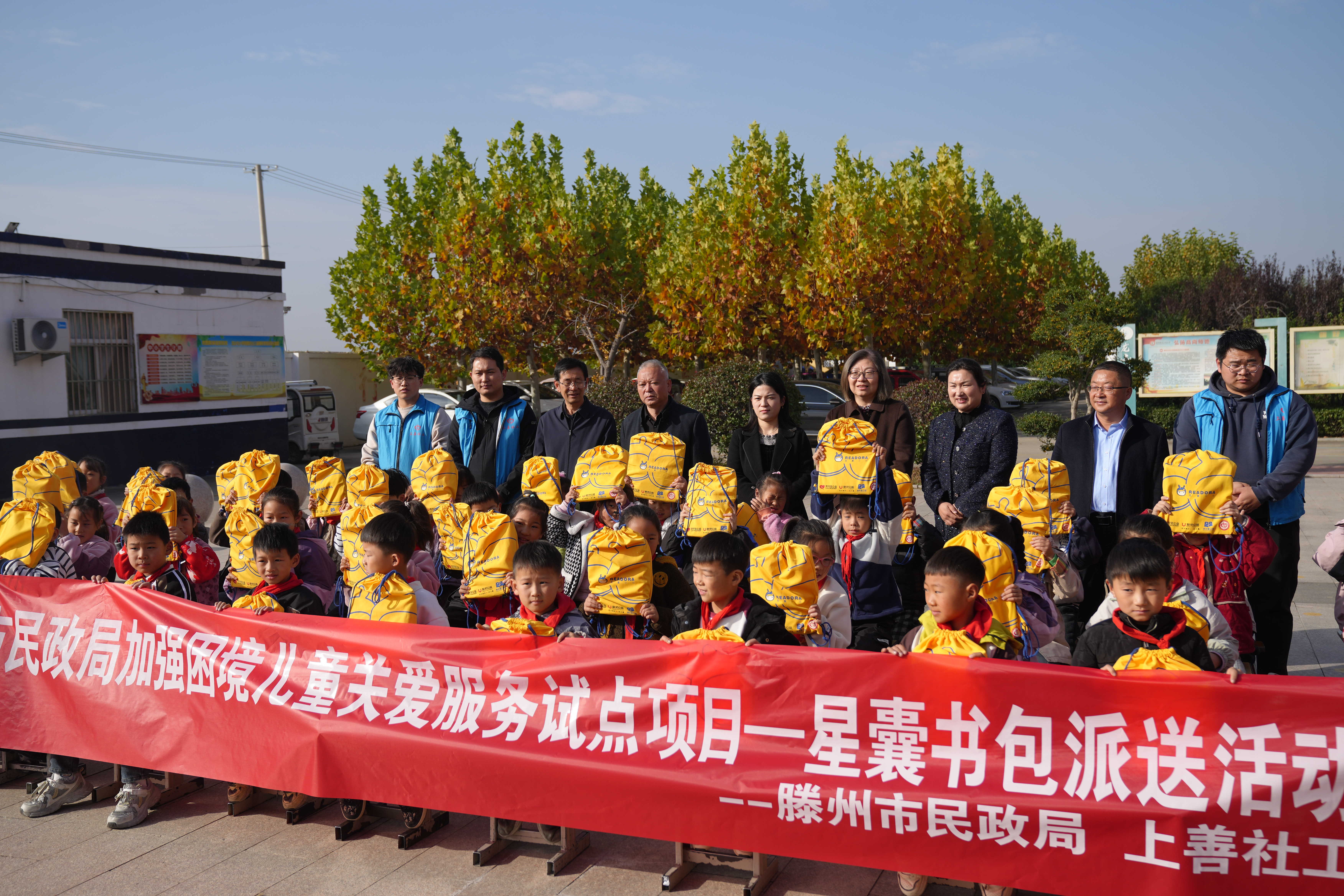 11月11日,由滕州市民政局主办,上善社工联合承办的“点亮乡村孩子阅读梦·2025年星囊计划阅读项目”公益活动在龙阳镇龙山屯小学温情启幕。活动现场,滕州市民政局党组成员王励欣、市社会福利中心副主任王新艳出席,并参与图书派发环节,将满载社会关怀的优质图书送到孩子们手中,为乡村儿童送上了一份厚重的精神礼物。
