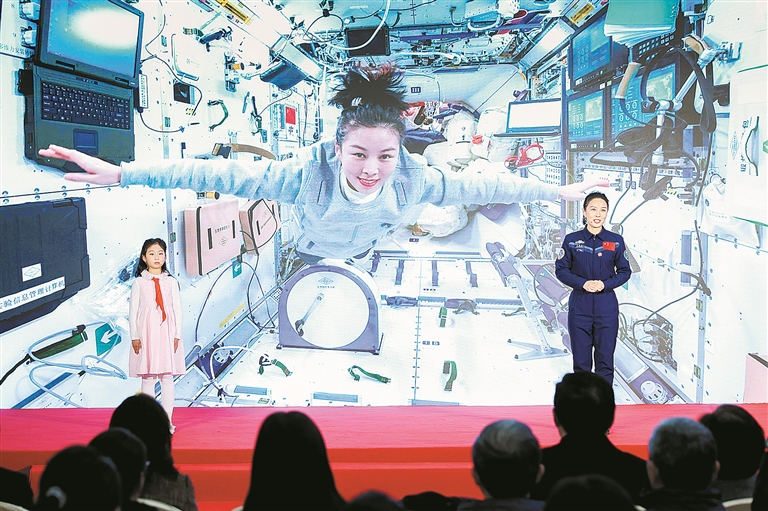 航天员王亚平与女儿在中国妇女儿童博物馆参加“巾帼科技 创新未来——科技创新巾帼行动主题展”开幕式。新华社记者 张玉薇 摄