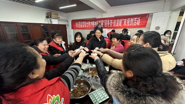 市纪委监委机关党支部党员到育才路社区新时代文明实践站,开展“迎冬至·送温暖”志愿服务活动,和社区居民一同包饺子,走访慰问社区老人。张炎炎 摄