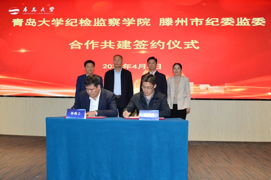 4月8日,滕州市纪委监委与青岛大学纪检监察学院在青岛大学举行合作共建签约仪式,双方共同签订了《纪检监察工作合作共建协议》,同时为“滕州市纪检监察理论研究中心”“滕州市纪委监委干部培训基地”“青岛大学纪检监察学院实践教学基地”揭牌。
