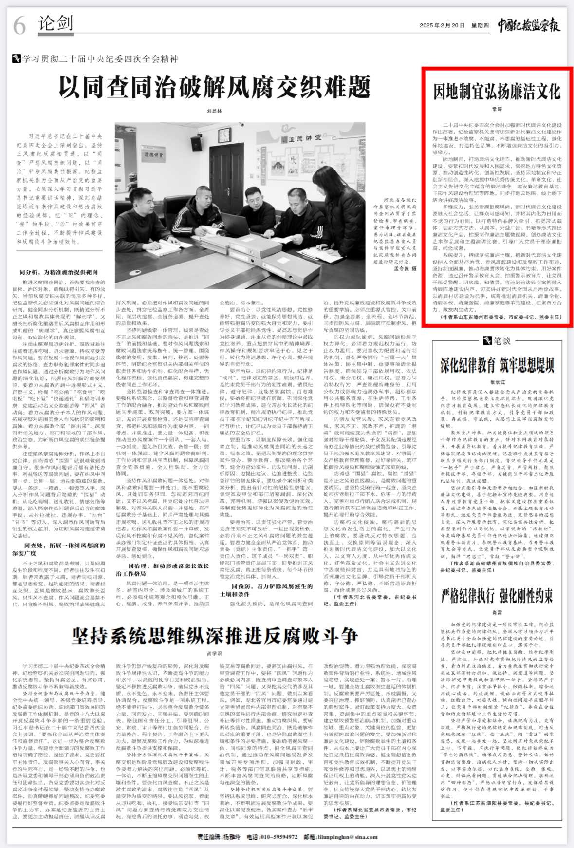 2025年2月20日,《中国纪检监察报》刊发《因地制宜弘扬廉洁文化》,介绍了滕州市纪委监委的经验做法。全文如下: