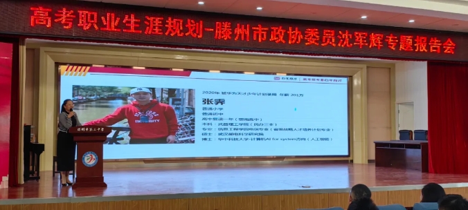 活动中,委员们首先参观了三中校园,详细了解了校园的建设情况。在召开的座谈会上,委员们就关心关注的农村高中教育问题与滕州三中战洪校长进行了深入交流。随后,市政协委员、山东辰泉教育科技有限公司法人沈军辉为大家带来了一场生动的专题报告会,就专业的选择、自我定位以及高考事项等方面,通过一个个鲜明的事例加以剖析,将自己多年的职业规划经验与大家分享交流。